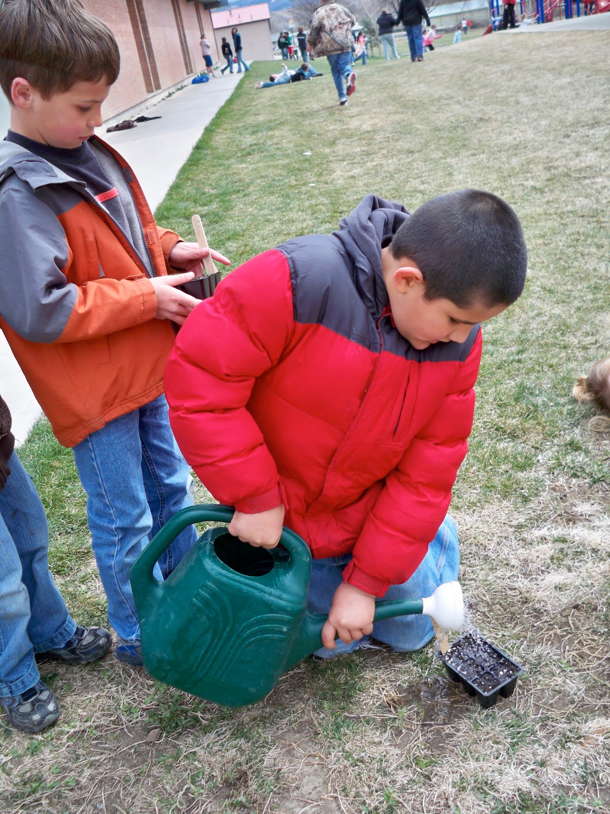 It was a blustery day at the Hotchkiss K-8 today, snowed even. Mark and I brought in soil, cells, watering cans and name tags for the tomato project. The 1st graders had the opportunity to plant a 3rd generation of seeds that have been student-saved and farm-grown. In August, when the fruit matures, it will be donated to area food banks, senior center, and Kids Pasta Project- www.kidspastaproject.org