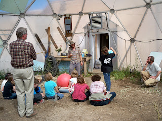 Last Tuesday afternoon the NFCMS students arrived in the biodome for the first time in 2010. Also, we had a new guest instructor, Webb Eavenson. Mark and I rounded out the team. Between the three of us and 50 students we touched on seasonal changes, climate, greenhouse design, the calculation of area using pi, we focused on our “customers”, and came up with a brief planting list.