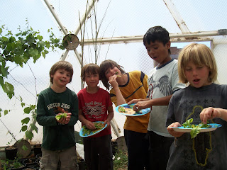our last spring class with the montessori 2nd/3rd graders was a lot of fun. after tending to the raised bed gardens for weeks, we got to reap our rewards. we had salads!! we broke into teams- we had harvesters, washers, sorters and identifiers! the students enjoyed salads that included an all lettuce mix, arugula, radishes, sugar snap peas and some nasturtium. the kids loved it. thank you mark & kevin for all of your help this season!