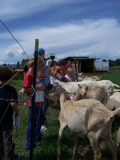 Thistle Whistle Farm and The Kampe Foundation have been hosting the NFCMS summer science camp on tuesday afternoons. the farm is a great place for applied science experiments, exploring and making new friends (animal, vegetable and mineral-types)! this was our first class in the new classroom. last week we had a basic introduction to the farm, started and decorated our science journals, and made some time to study atoms & molecules! the students had the opportunity to milk goats, then experiment with the molecular structure of the goat milk using food color and a few other ingredients. The students are getting great exposure to the diversity of the plant world. Mark grows so many interesting plants on his farm!
